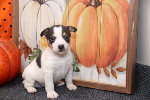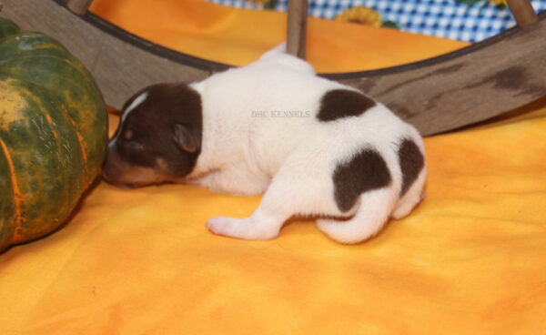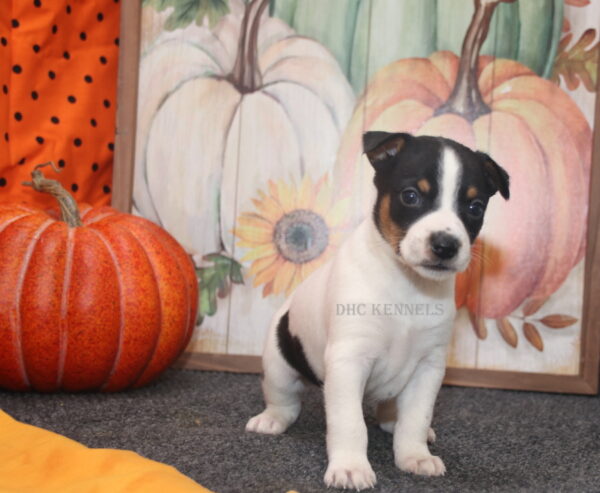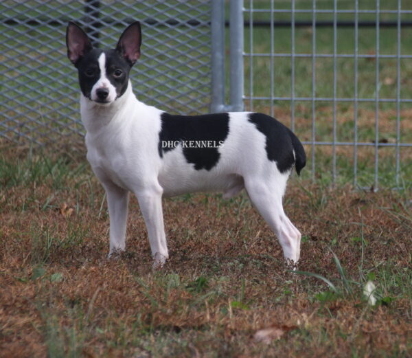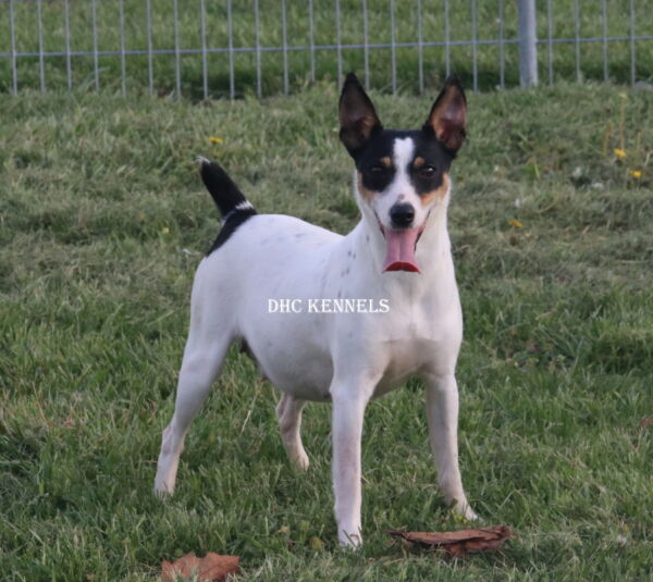 Rat Terriers are happy-go-lucky, playful, long-lived pets. As farm dogs, they generally get on well with other dogs and livestock; but as terriers, small quick-moving animals like squirrels can fire up their engines. Home and family oriented, Rat Terriers are vigilant watchdogs. They can be wary of strangers but not adverse to befriending their humans’ friends. Rat Terriers are among the most trainable of terriers, and sports like agility, fly ball, and coursing are excellent ways to socialize them and burn off excess energy. Life Expectancy: 15-18 years. They come in 4 different sizes, Toy (under 10 lbs), Mini (11-18 lbs), Standard (19-28 lbs) and Decker (29 and up). They also come in 2 different varieties- Type A -(long legged) or Type B- Short legged ( sometimes referred to as a Teddy Roosevelt.) We currently only raise the Type A- Toy, Mini and Standard sizes. All of our Rat Terriers have been health tested and are PLL clear.
